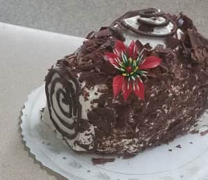 Black Forest Chocolate Curls And Bavarian Creme Filled At European Cake Gallery In Pt Loma California Gourmet Cakes Food Cake